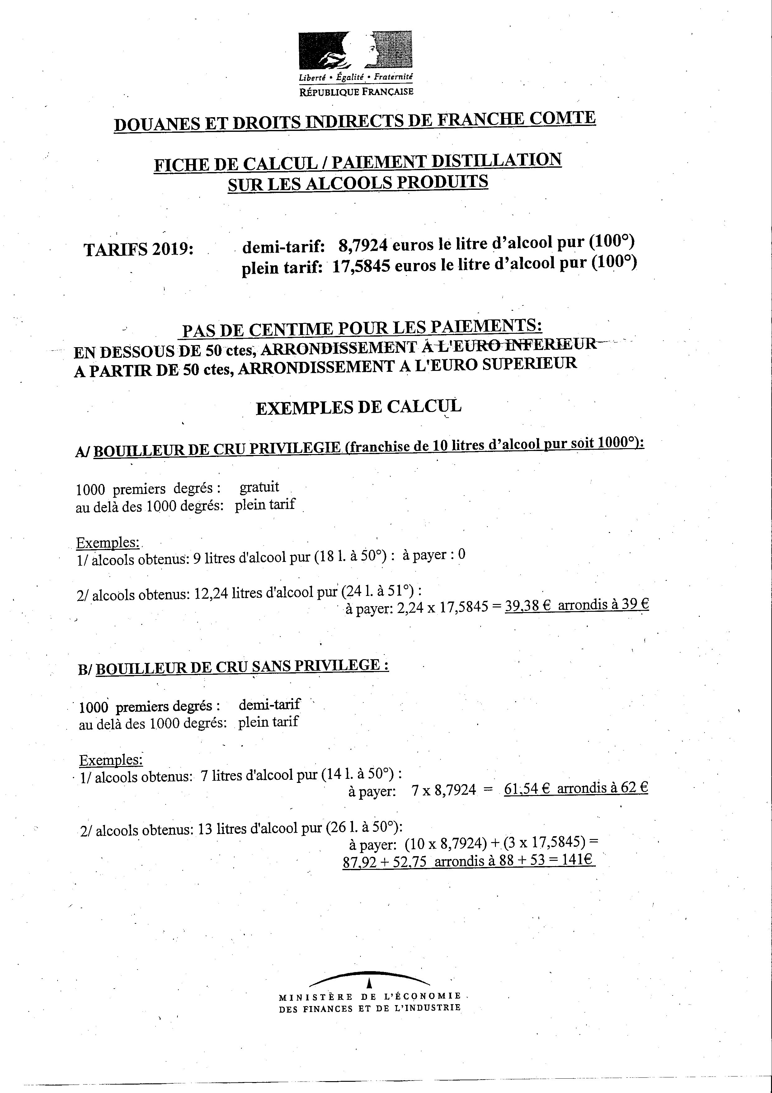 Fiche de calcul / paiement douanes :